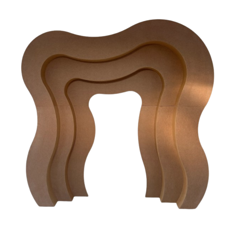 Ścianka do dekoracji portal przestrzenny P8 to konstrukcja w kształcie portalu o wymiarach 230 × 230 cm, wykonana z MDF lub sklejki. Jej przestrzenny design sprawia, że stanowi efektowne tło i wyjątkowy element aranżacyjny, idealny na wesela, Komunie, chrzciny, baby shower czy eventy firmowe.